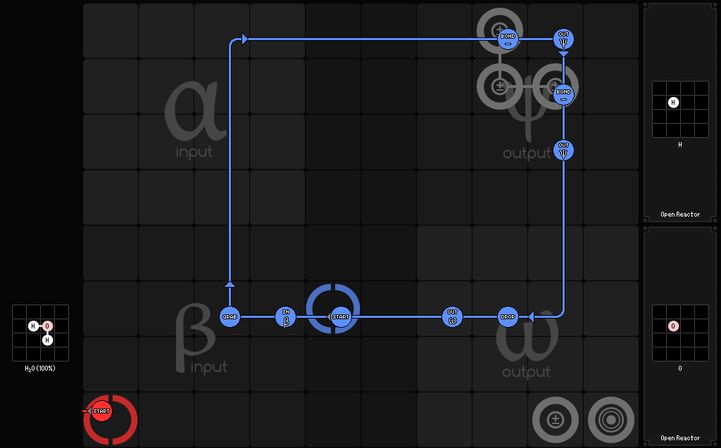 There is also a challenge to complete the level with only two reactors. All you have to do is merge the water to oxygen part of the first reactor with the zirconium producing reactor.
